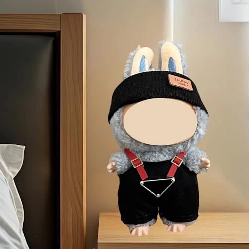 17cm Doll Clothes For Labubu, 2-Piece Clothes For Dolls Outfit, Accessories For Cute Dolls Clothes, Black Hat + Overalls, No Doll Included