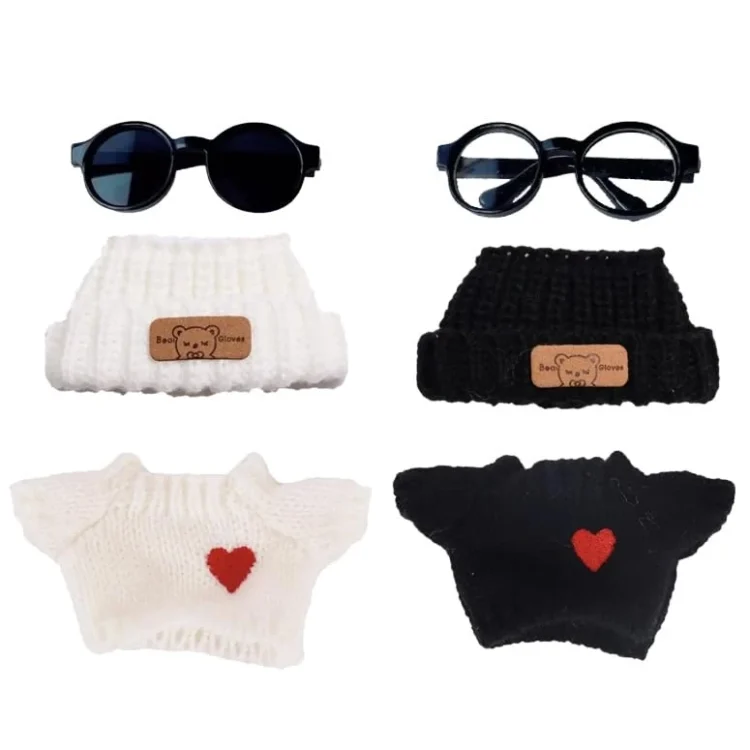 • ACCESSORY DETAILS: 17cm doll outfit for labubu includes matching knitted beanies with cute bear logo patches and round-frame glasses in coordinating colors
