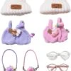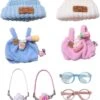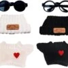 - ACCESSORY DETAILS: 17cm doll outfit for labubu includes matching knitted beanies with cute bear logo patches and round-frame glasses in coordinating colors