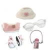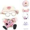 Clothes For Labub, 5-Piece 17cm Clothes For Labub Set With Accessories – Includes Light Pink Velvet Heart Hat, Mini Camera, Glasses & Canvas Shoes (Doll Not Included)(A)