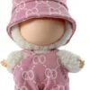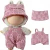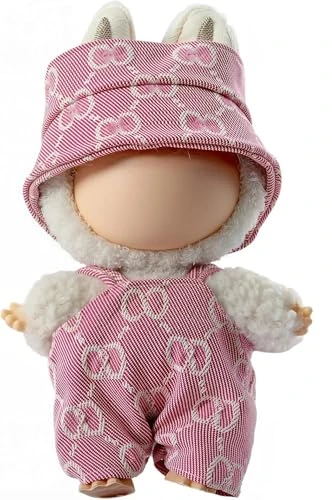 Dress up your 17cm doll in style with this adorable pink and white patterned outfit set. This charming two-piece ensemble features a cozy winter-themed design with plush white trim and adorable ear details on the hood. The set includes a hooded top and matching bottoms crafted in a distinctive pink diagonal weave fabric with delicate white pattern details throughout. The outfit is specially sized to fit 17cm dolls perfectly, with easy-to-use design for simple dressing and undressing. The attention to detail in this handcrafted clothing set makes it a perfect accessory for collectors and doll enthusiasts. Please note that this listing is for the clothing set only – doll is not included. The premium construction ensures the outfit will maintain its shape and appearance through gentle play and display. Give your doll a fashionable new look with this sweet and stylish clothing set.