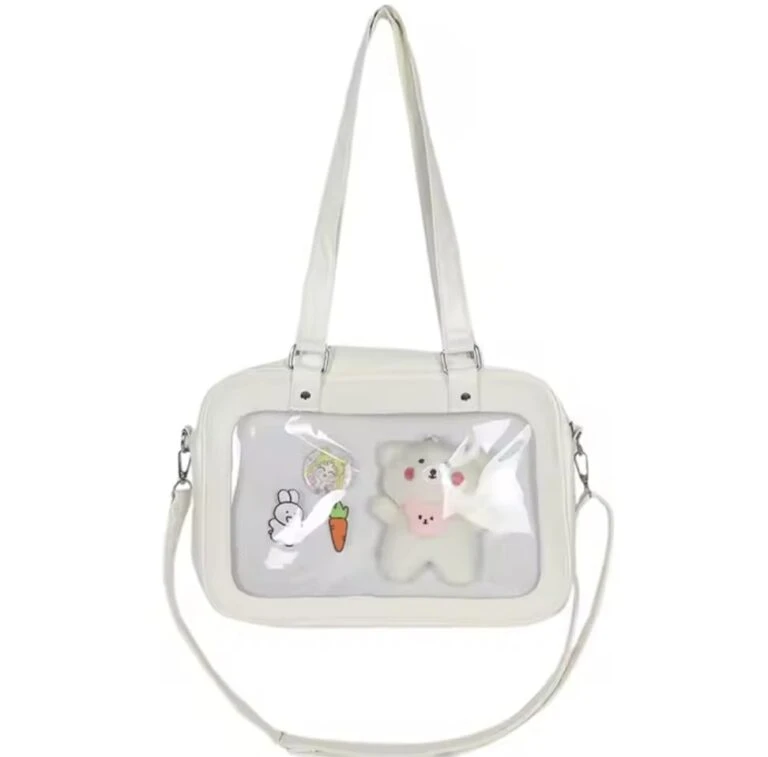 Womens Ita Bag Crossbody Tote – Messenger Shoulder Bag For Anime, Kawaii, Pin & Plushie Display | Clear Front, Mesh Insert|