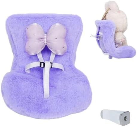 Labu Doll Car Seat Accessories – Safety Travel Carrier For 17cm Macaron Dolls (Fits LABU)| Kawaii Miniature Car Ride & Display Stand | Cute Collectible Figure Case DollCarSeat(Purple)