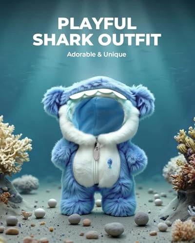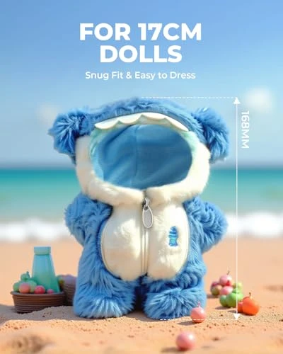17cm Doll Clothes, Plush Shark Outfit And Clothes Accessories For 6.7 Inches Doll Clothes, Hooded One-Piece Suit With Zipper, Fluffy Blue Dress Up Clothes For Dolls (No Doll)