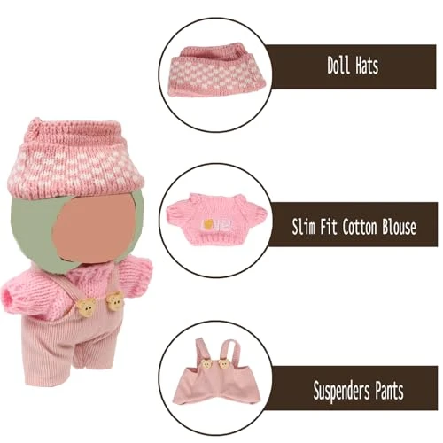 17CM Doll Clothes (No Dolls),3Pcs Outfits For 6.7 Inch Dolls Accessories Party Decoration Favors Merch Gifts Fits Popular Cute Blind Box Art Dolls (Pink)
