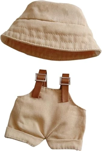 Clothes For Doll (NO Doll), Hat & Overalls Set For 17cm Accessories Suit, Cute Clothes For Dress Up Unique Style(Style F)