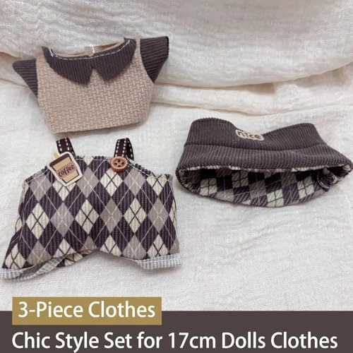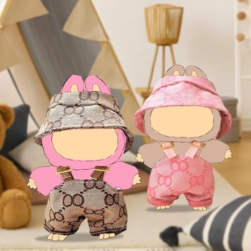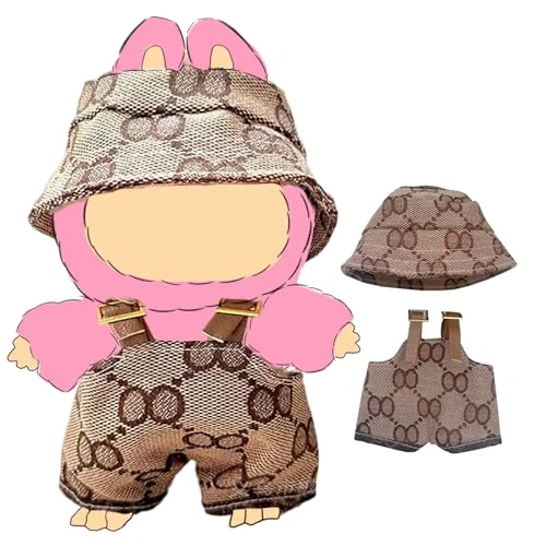 Clothes For Labuu, 2-Piece 17cm Clothes & Hat Set For Labuu, Exquisite Accessories For Labu, Doll Accessories Only Clothes (No Doll) (2PC-Brown)