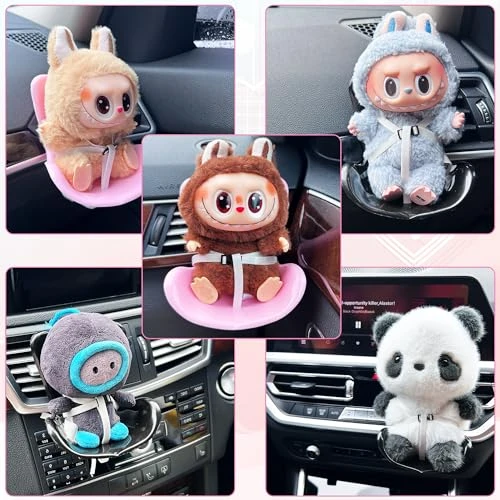 2 Set Car Seat For Labubu Dolls, Miniature Air Vent Clip Doll Seat For Car, Cute Car Ornaments For Doll Display, Doll Accessory For Collectors & Interior Decor, Black, Black And Pink