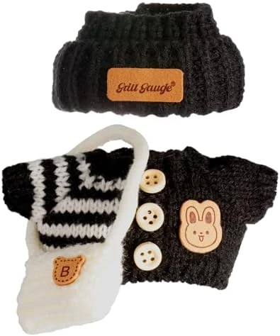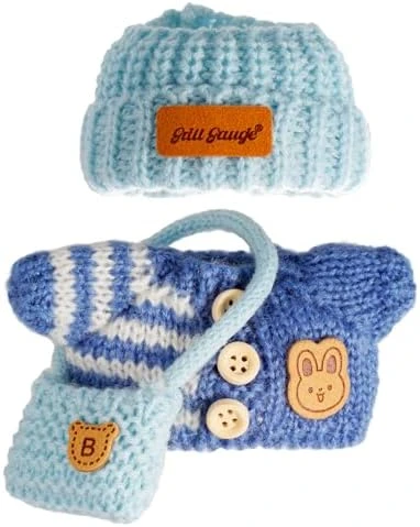 Clothes For 17cm Dolls, Clothes Set For 17cm Doll, Crochet 3 Piece Set Hat Clothes Backpack For Dolls, Stylish Adorable Dolls Clothes Accessories (No Doll) (Brown)